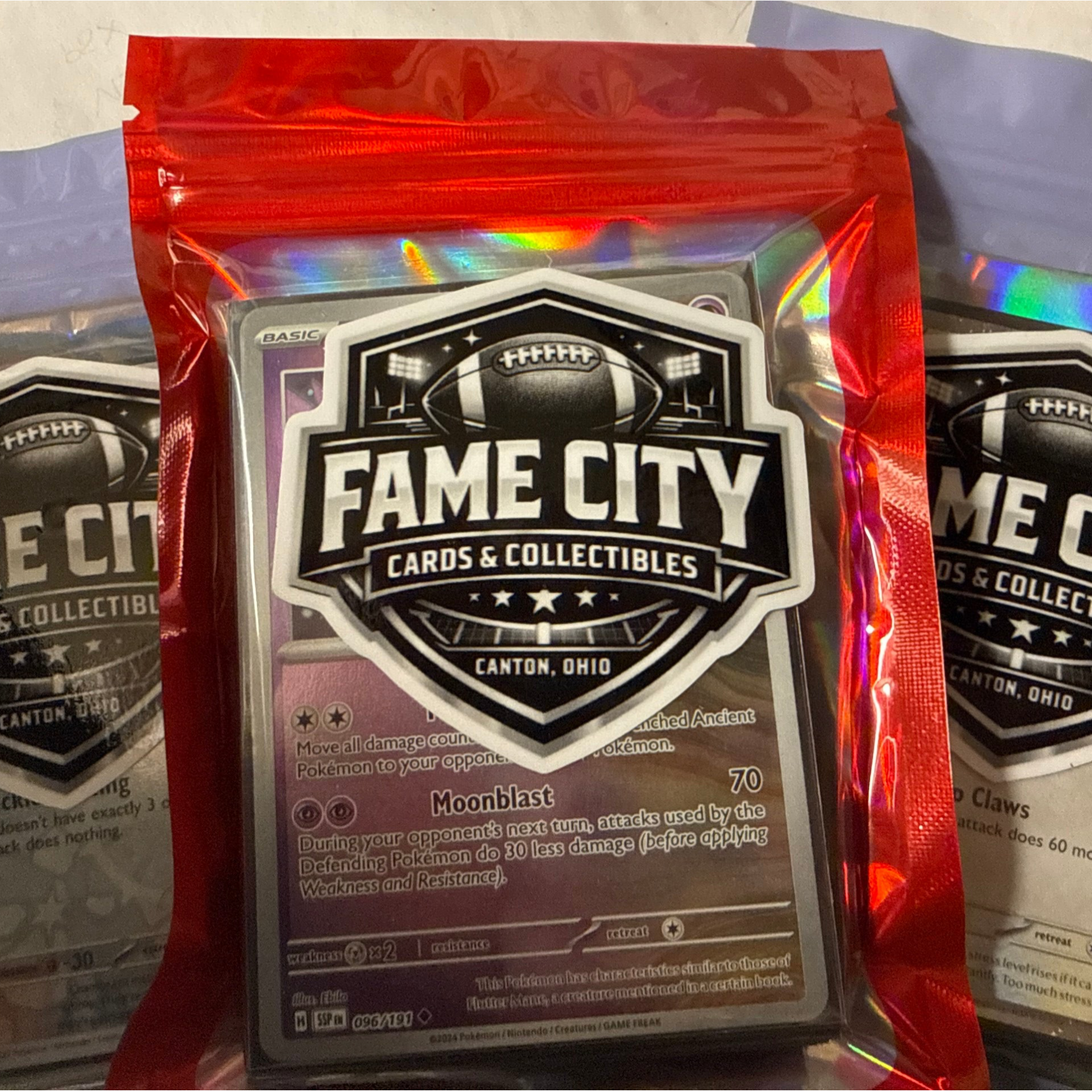 Follow Fame City Card Co. for weekly card drops, mystery packs, and giveaways.