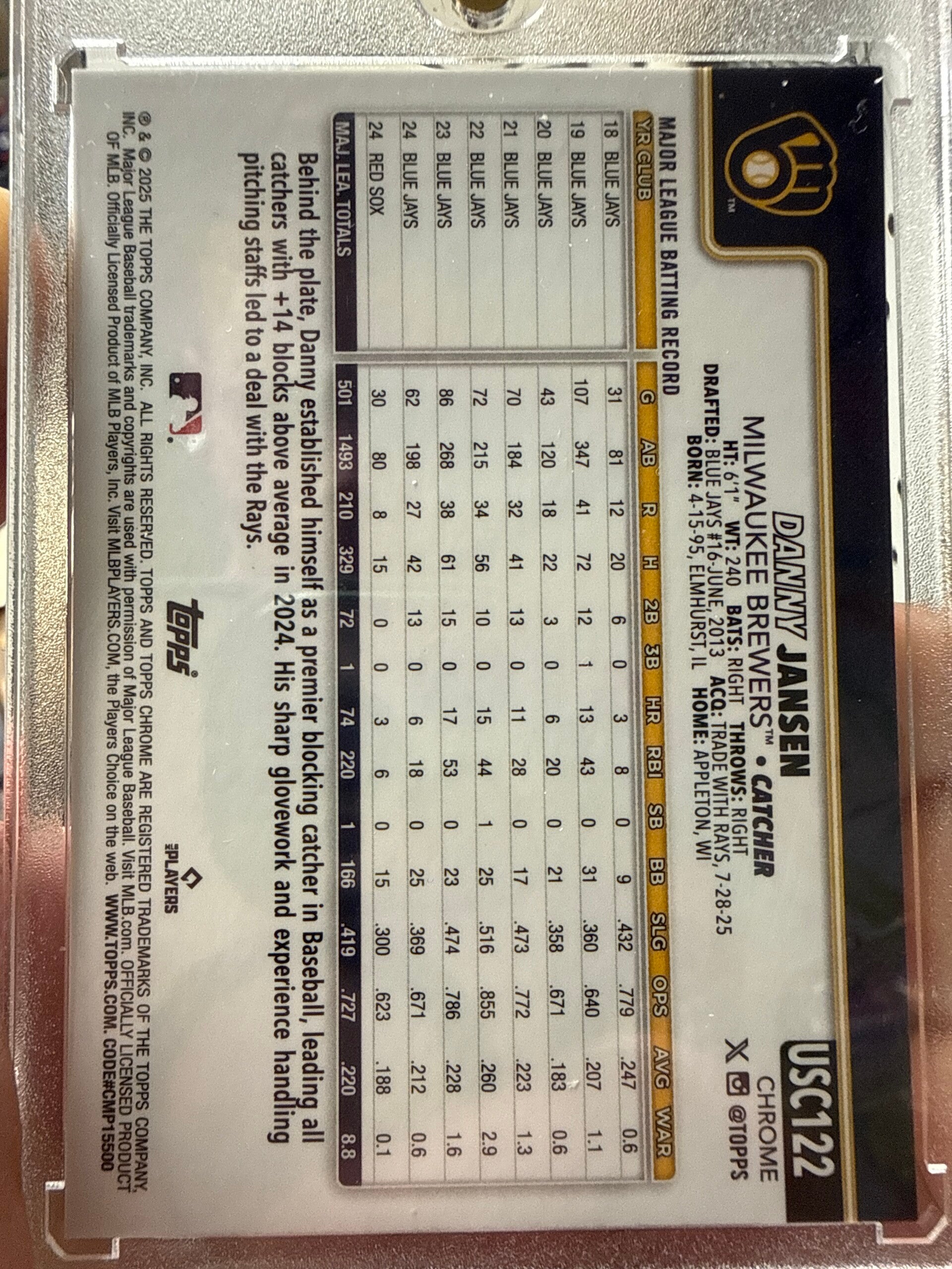 2025 Topps chrome Green lava parallel numbered /99 Danny Jansen #USC122 of the Milwaukee Brewers