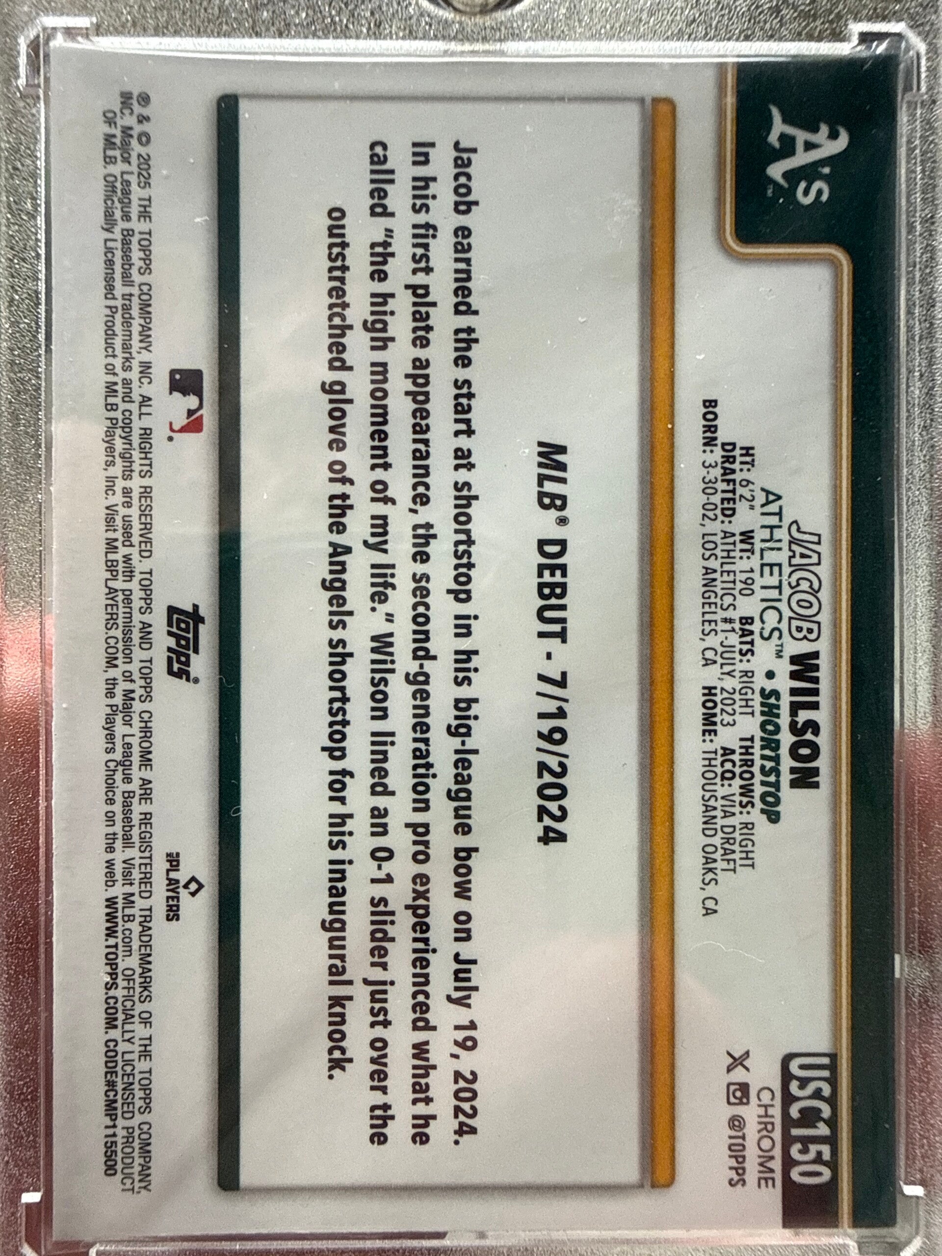 2025 MLB rookie debut Jacob Wilson Oakland athletics X-Fractor Topps chrome Nm-Mt