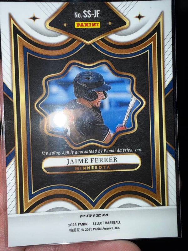 2025 Panini Select Autographed issue certified. Jamie Ferrer #SS-JF Insert Minnesota Twins in Nm-Mt condition.