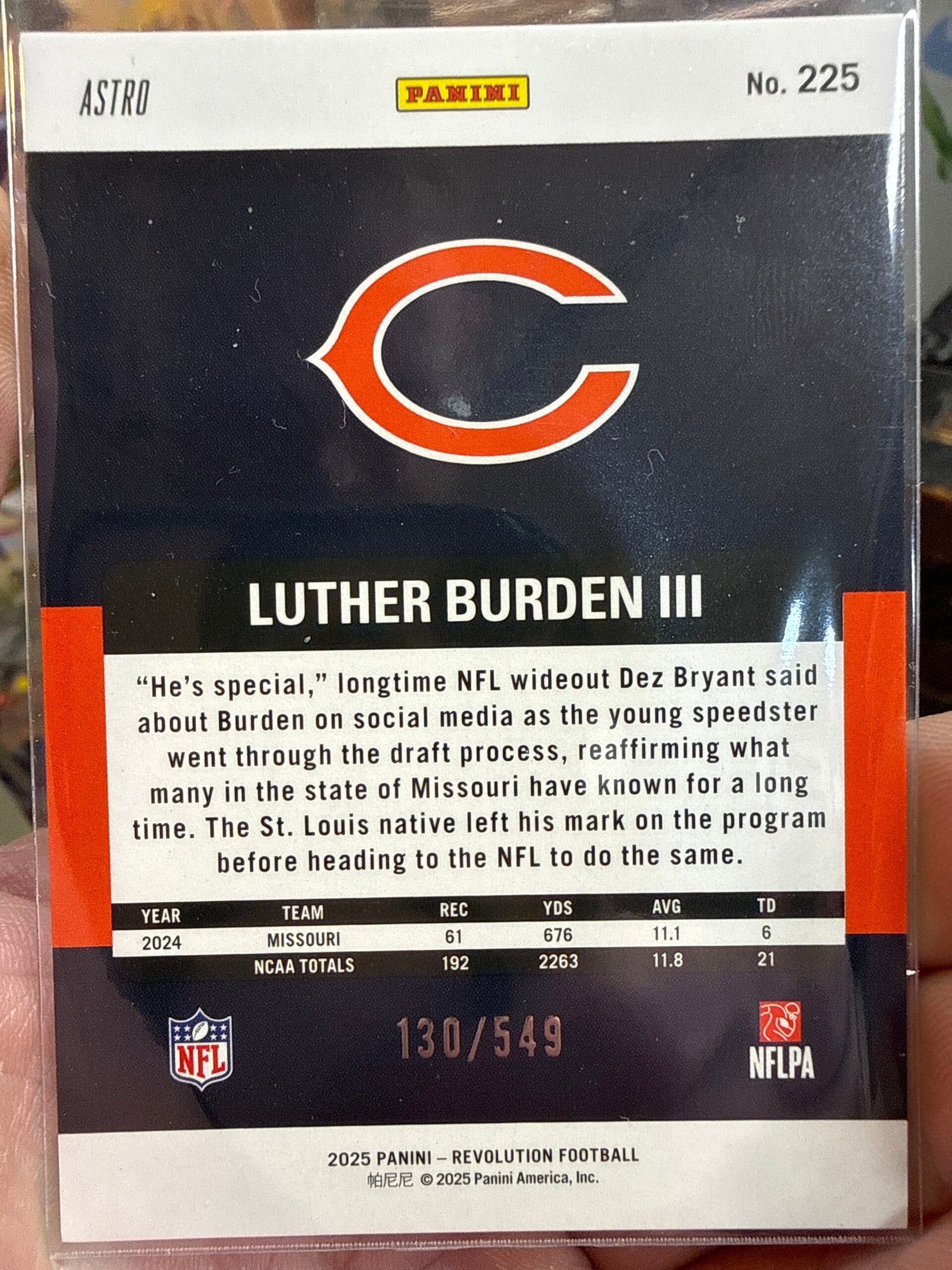 2025 Panini Revolution Luther Burden 3rd #225 /549 Nm-Mt condition Chicago Bears blue Astro parallel